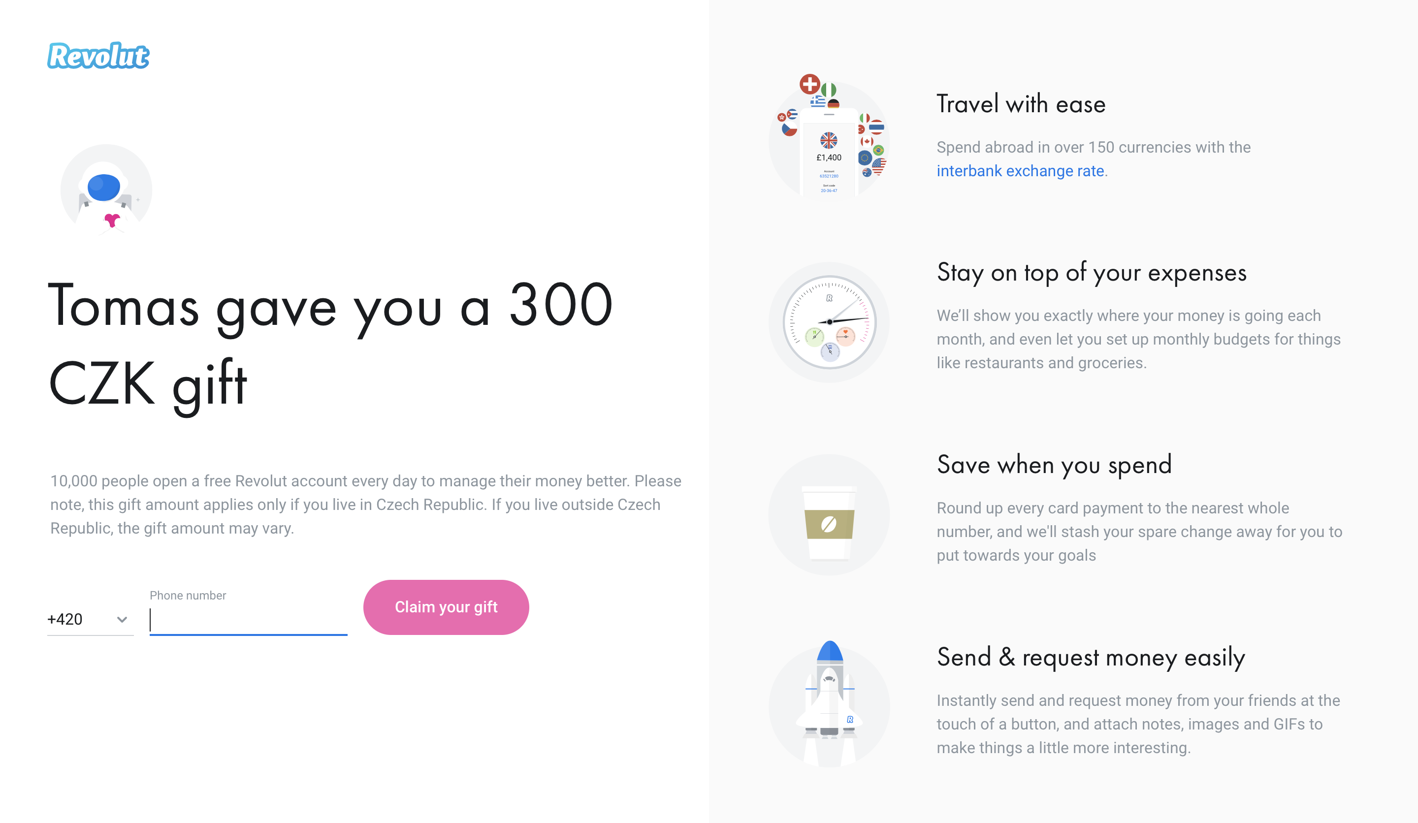 Revolut je služba, která zdarma nabízí i debetní kartu, díky které můžete platit v zahraničí za mnohem lepších podmínek. Dříve se za kartu i poštovné platilo několik stovek korun, nyní po získání miliónů uživatelů po celém světě dokonce nabízí peníze zdarma vám 🙂